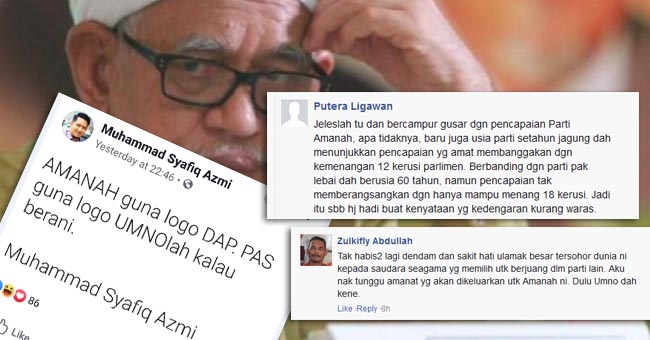 “AMANAH guna logo DAP, PAS guna logo UMNO-lah kalau berani,” tulis Muhammad Syafiq.